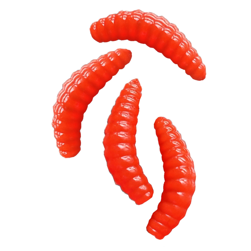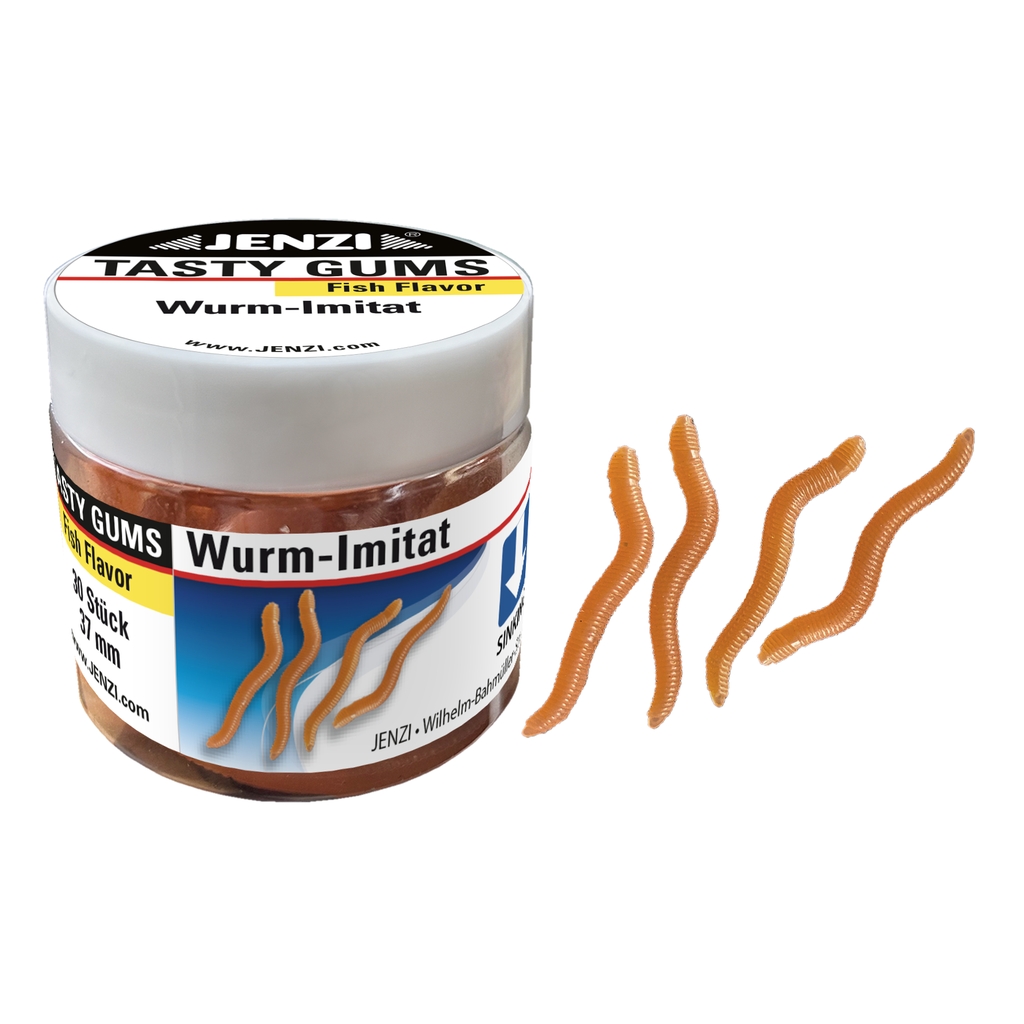 Taste Gums: Gummiköder mit Geschmack für Forellen & Raubfische. Maden, Würmer, Mais in vielen Farben & Aromen.