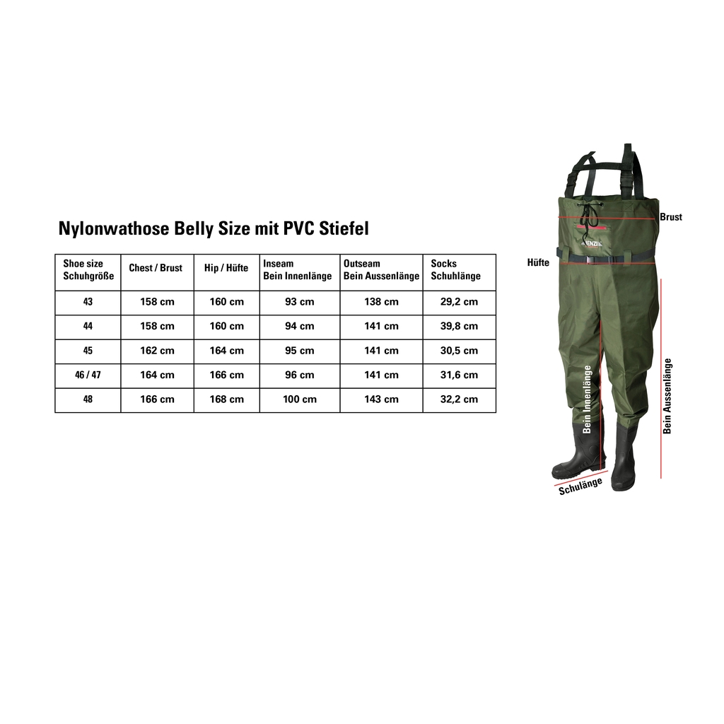 JENZI Nylon Wathose Bauchgröße (BELLY Size) – leichte