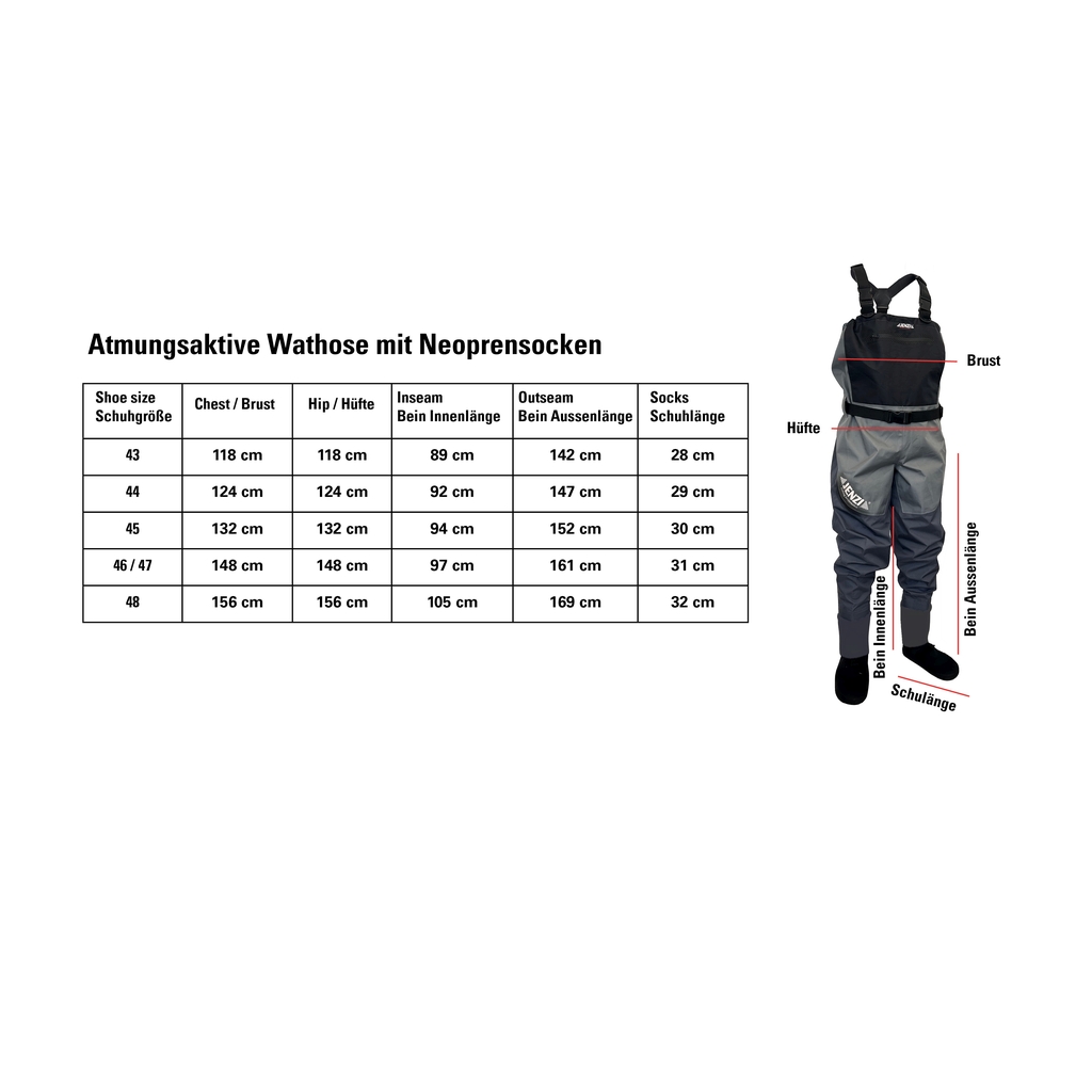 -       Hochwertige atmungsaktive Wathose mit Neoprensocken