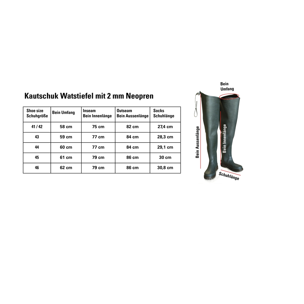 -       Hochwertige Naturkautschuk-Watstiefel (Hüfthöhe)